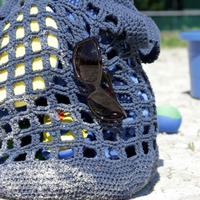 Get ready for summer with this convenient crochet beach tote. Perfect for the beach or pool, this tote is made up of large mesh squares that allow damp towels and swimsuits to breathe.