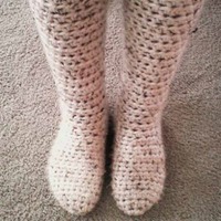 Never buy long socks to go with your boots again! These crochet socks are extra cozy and look great under your favorite pair of tall boots. Fold the tops down and turn them into super-cute booties to wear around the house or over a pair of leggings. This easy crochet pattern can even be turned into a great pair of crochet mary jane shoes!