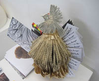 Give your office desk personality with a business card holder made by folding the pages. Once all the pages are creased, glue the front and back covers together. Tuck cards between the folds. (Hint: This is also great for displaying postcards and other promo info at craft booths.)