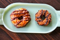 Now for the Samoas, the fancy grown-up Girl Scout cookies with caramel, chocolate and coconut. This recipe starts with baking a similar graham cookie like the Tagalongs, only this time you'll cut out the center like a flat doughnut. Then you're going to toast up some delicious shredded coconut and fold it into warm, melted, caramel candies. You'll then carefully spread the delicious caramel-coconut mixture on your rounded cookie o's. Once again, we get to dip our cookies in chocolate and then drizzle more on top. Now you can enjoy these delights all year long without stocking up the pantry. You can find the recipe and step-by-step process at