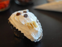 If you can make cupcakes, you can make these ghost treats. Just make your favorite cupcake recipe, then, as they cool, pinch the wrappers to create a slight triangle shape. Frost with vanilla icing and decorate with candies or almond slivers.