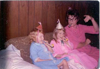 The photo (left) shows New Year's Eve hats I colored and made. I remember having trouble making the flat paper into cones. I'm the one in the middle. My sister and Mom are on either side.