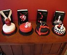 Ever wanted your vampires cute and chubby? Black ribbon and a flocked velvet background add gothic styling to an impishly sweet Bella and an Edward more reminiscent of James Dean than Nosferatu.