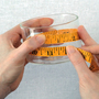 Measure the circumference and height of the container with measuring tape. Add approximately 1/2 inch (13 mm) to the circumference so there will be enough paper to overlap when it is wrapped around the container.