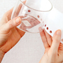 Apply a strip of double-sided tape to one end of the paper. Wrap the paper snugly around the container, overlapping the ends. Try different papers—vellum, parchment, or tissue—for a variety of looks.