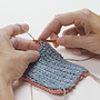 Work a sc stitch by catching the working (C) yarn at the back and drawing up a loop, then completing the stitch as usual. In patterns, this step is described as, “Attach yarn C with a sc at center of row 14 of both squares, working through both thicknesses.”