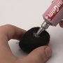 Place the red felt ball base on the felting foam, add a small amount of black wool and attach it using the needle felting tool. This will form the underside of the ladybug.