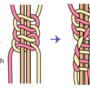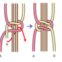 Both variations of the spiral knot are great for bracelets. Use two leather cords for the core and make spiral knots with three different colors of hemp cord. Combine the left and right spiral knots to create a zigzag pattern.