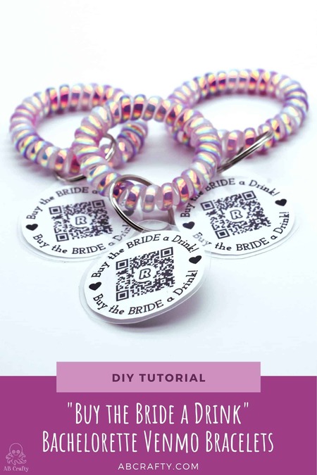 Make your own buy the bride a drink venmo bracelets: https://www.abcrafty.com/buy-the-bride-a-drink-venmo-bracelets These venmo QR code bracelets are easy to make and includes a free printable template to make them: https://www.abcrafty.com/product/buy-the-bride-a-drink-venmo-template