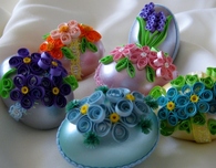 Paper quilled Easter eggs, done on a styrene pearlized egg. Various colors and st...