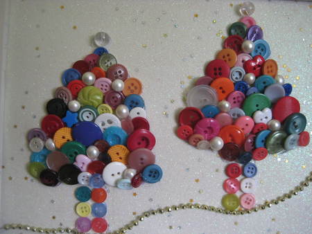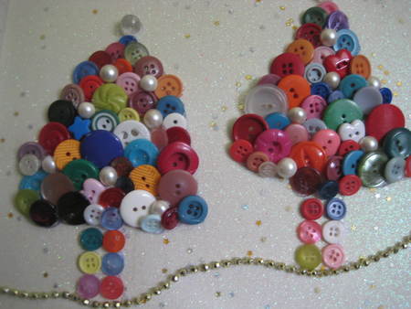 Each one with various hues of bright holiday color. Pearl buttons accentuate the fun and on top...a clear vintage button adds just the right amount of whimsy.