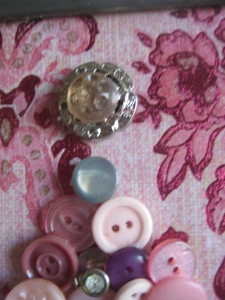 Frame is large and made from Gluechip glass.(see close up) and accentuated with solder corners. Frame is 11" by 13" and is waiting to go in your bathroom, little girls rooms or any room that has that shabby and pink feel. All my frames Christmas trees have a stand on backside.