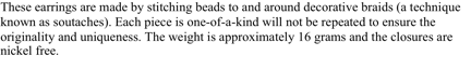 Orecchini realizzati a mano con tecnica "Soutaches."